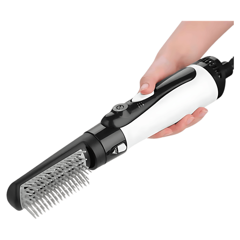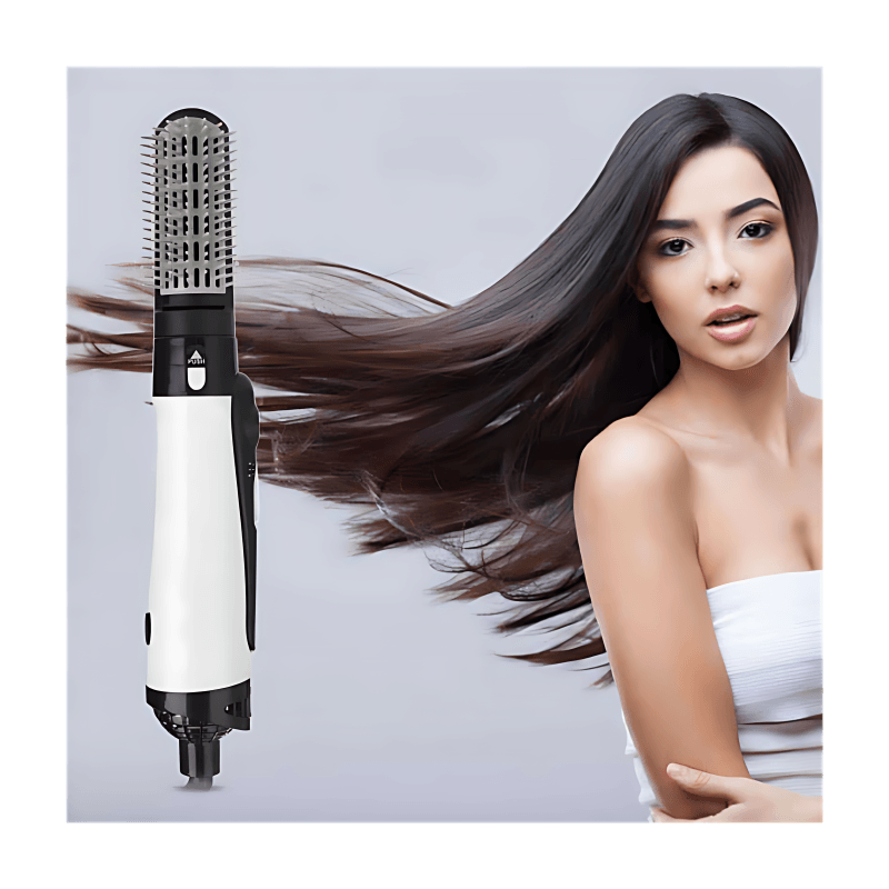 Experience the convenience of an all-in-one hair styling tool with our Professional Hair Dryer 3 in 1 Hair Straightening Comb. This versatile brush eliminates the need for a blow dryer, round brush, and flat iron. Its 2-gear wind tensity feature provides consistent, warm air for drying your hair. The hot gear setting is perfect for fast drying. The circular hole design evenly disperses heat, while the hard plastic bristles protect you from burns. This easy-to-use hair styling tool provides complex drying and styling flexibility for all hair types. Simply turn the temperature control dial counterclockwise to the desired setting. With 2 heat settings to choose from, you can select high heat for thick or winter hair, low heat for thin or spring/autumn hair, or cool for the summer season. Tips for Usage: For faster drying, remove excess water first with a towel. For voluminous hair, hold the brush close to the roots and roll towards the ends. For smooth, straight hair, brush from the roots towards the ends. To achieve curly ends, brush your hair, hold for 3 seconds, and then rotate inward or outward. This hot air brush is made with durable ABS material and has a voltage of 220V. The powerful 1000-1300W motor operates at a frequency of 50/60Hz. The package includes a hand shank, curly head, and straightener head. Say goodbye to bad hair days and hello to a beautiful, flawless hairstyle every day!